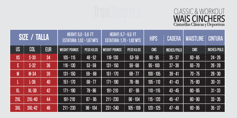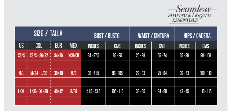 - Identify your results in the sizing chart and see the size that will be proper for your silhouette.